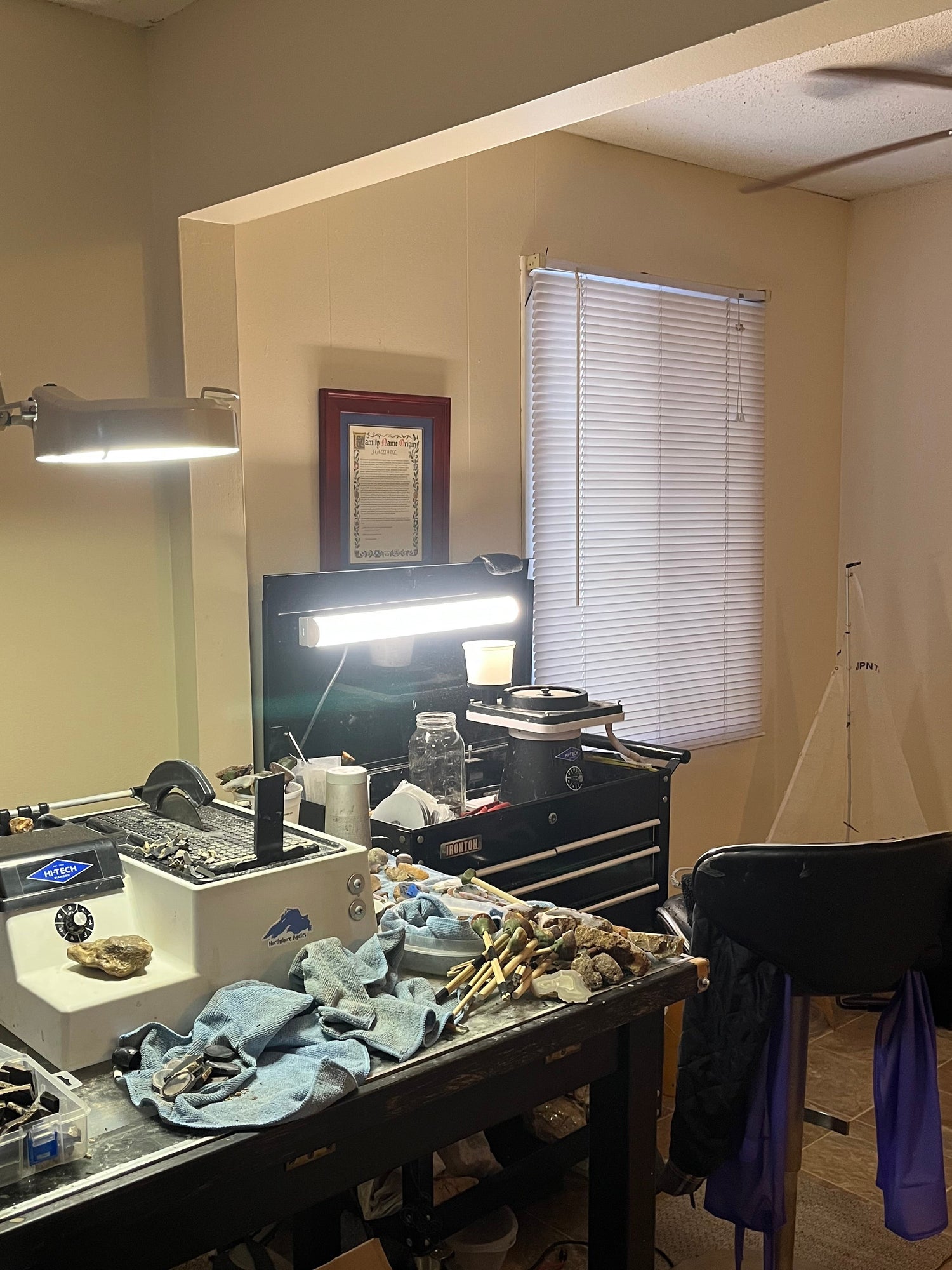 All Polishing, Necklaces, Tumbled Stones, and Polished Specimens are cut and polished by Trevor Halliwill (unless otherwise specified in description)