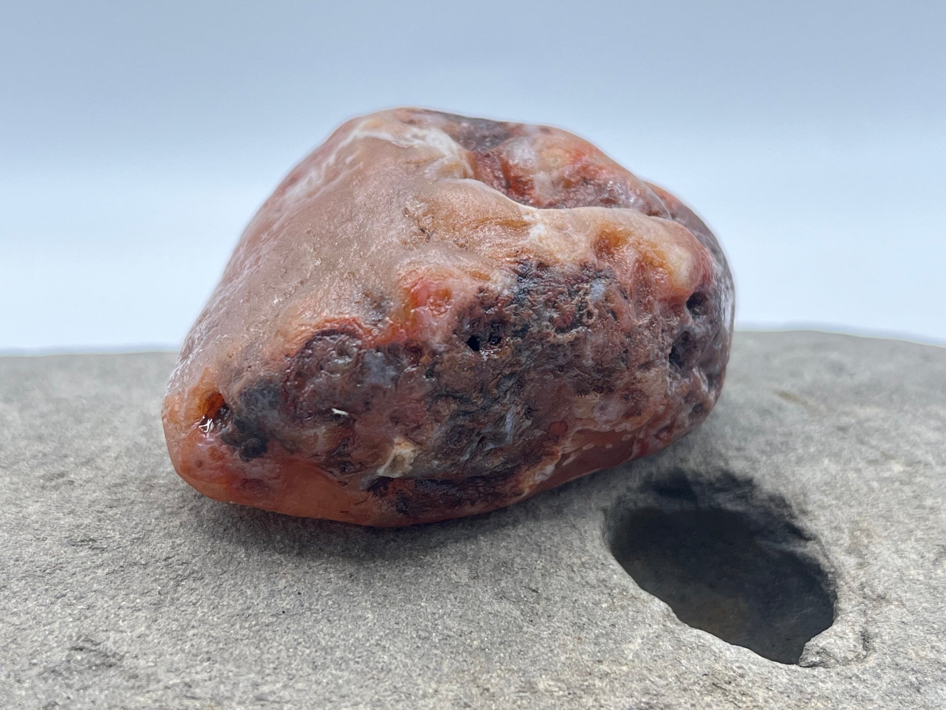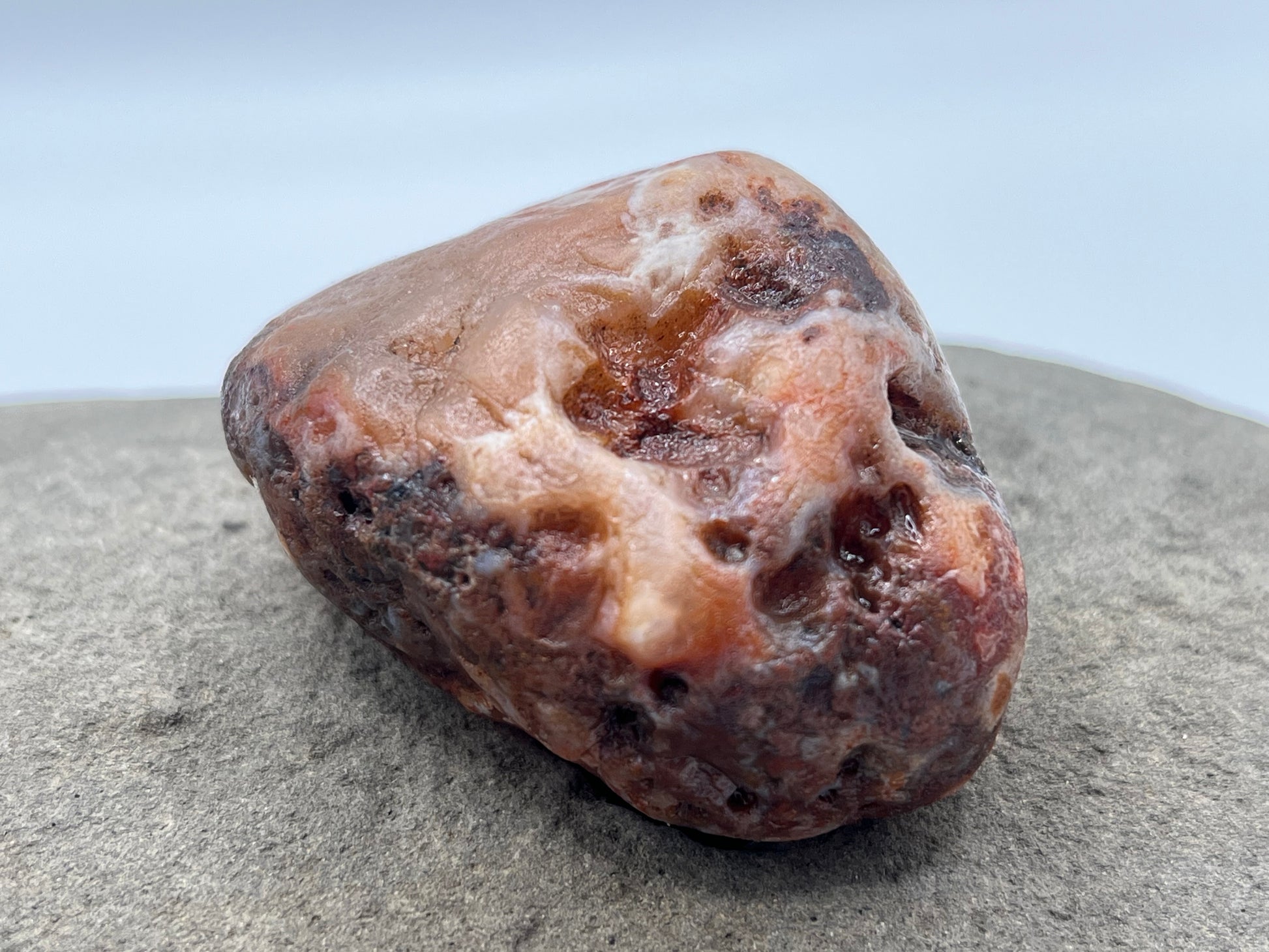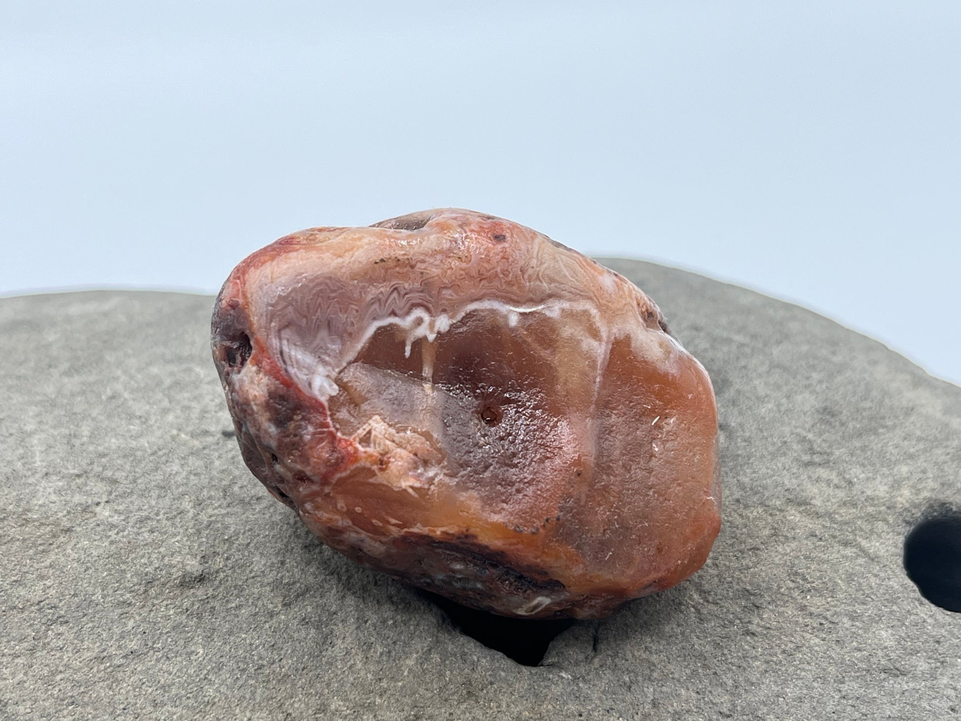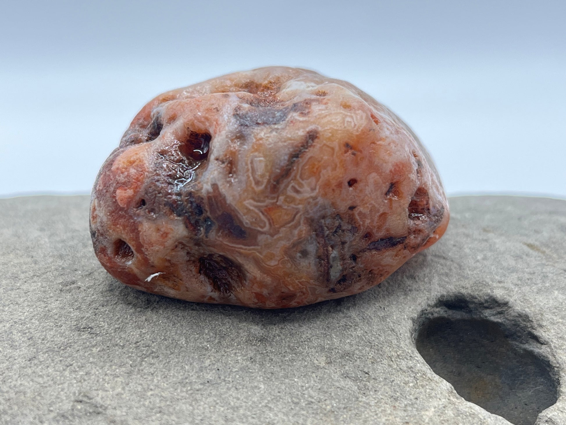 Lake Superior Agates come from Minnesota and are debated as the oldest agates on the planet! Created during the mid continental rift in the northern end of the country 1.1 billion years ago. This geologic event created air pocket filled basalt flows in northern Minnesota and the basin which created Lake Superior! These basalt flows had iron rich silica water flowing over them creating the signature red banding in these gorgeous stones! As the Larentide Ice Sheet made its way across the North Shore of Lake Superior roughly 20,000-25,000 years ago. It ground these gorgeous agates out of the basalt and dispersed them through out the Midwest region!