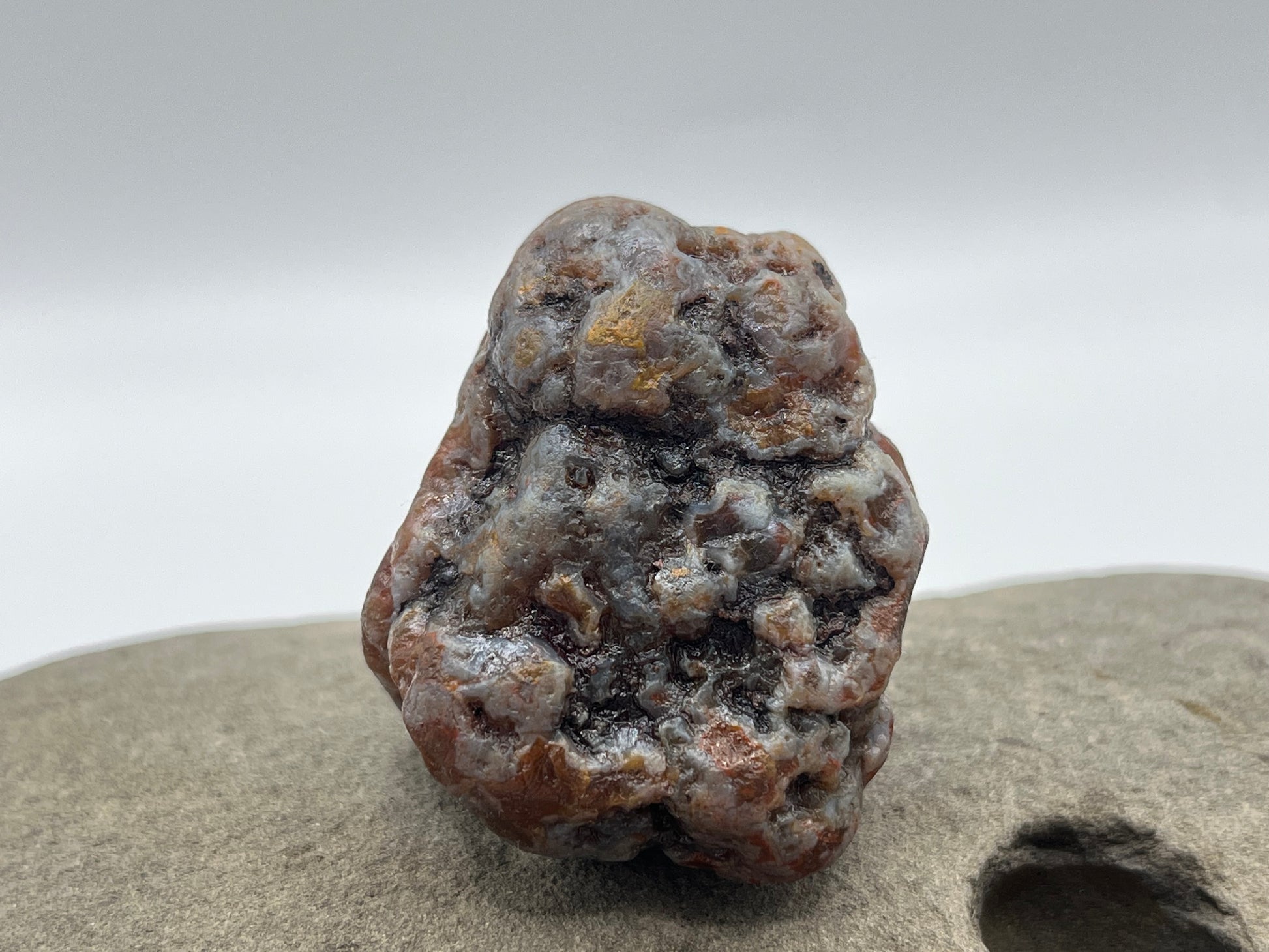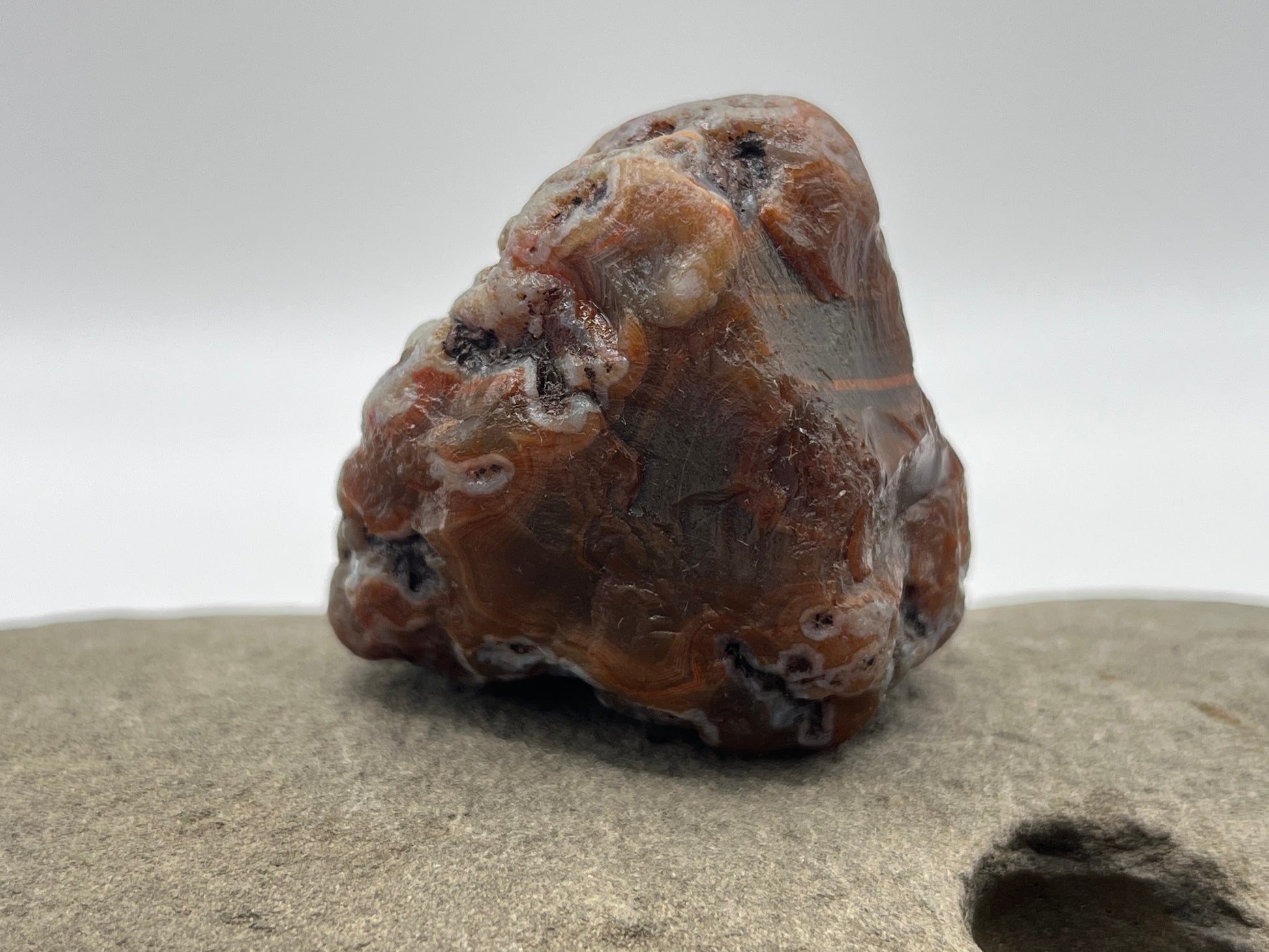 Lake Superior Agates come from Minnesota and are debated as the oldest agates on the planet! Created during the mid continental rift in the northern end of the country 1.1 billion years ago. This geologic event created air pocket filled basalt flows in northern Minnesota and the basin which created Lake Superior! These basalt flows had iron rich silica water flowing over them creating the signature red banding in these gorgeous stones! As the Larentide Ice Sheet made its way across the North Shore of Lake Superior roughly 20,000-25,000 years ago. It ground these gorgeous agates out of the basalt and dispersed them through out the Midwest region!