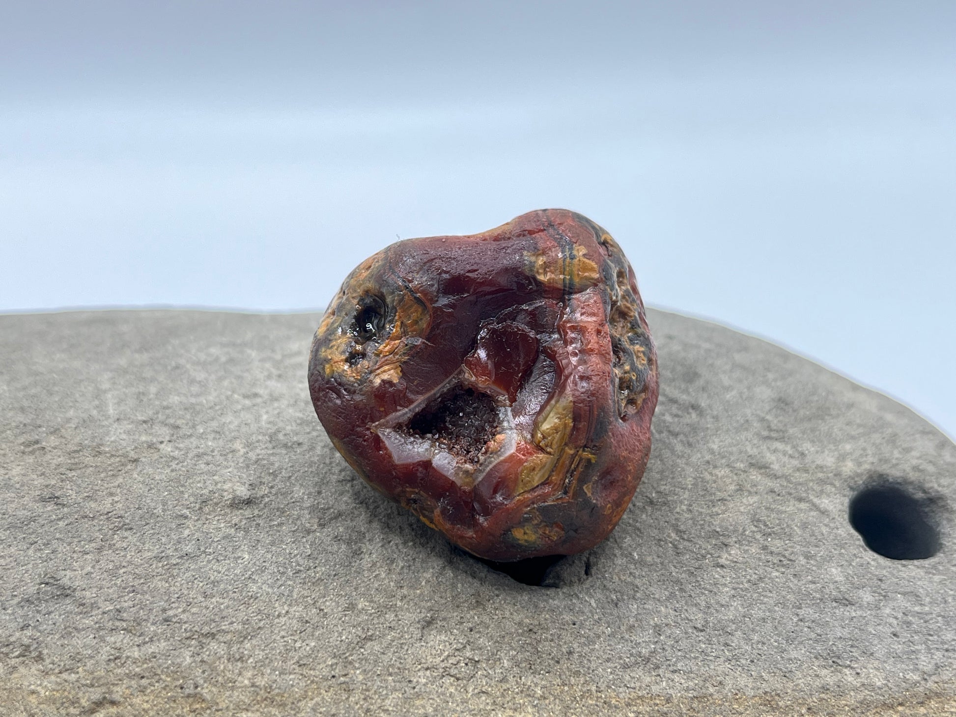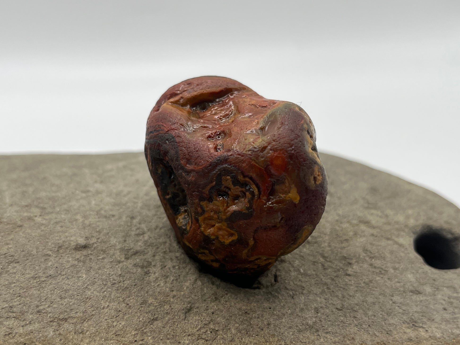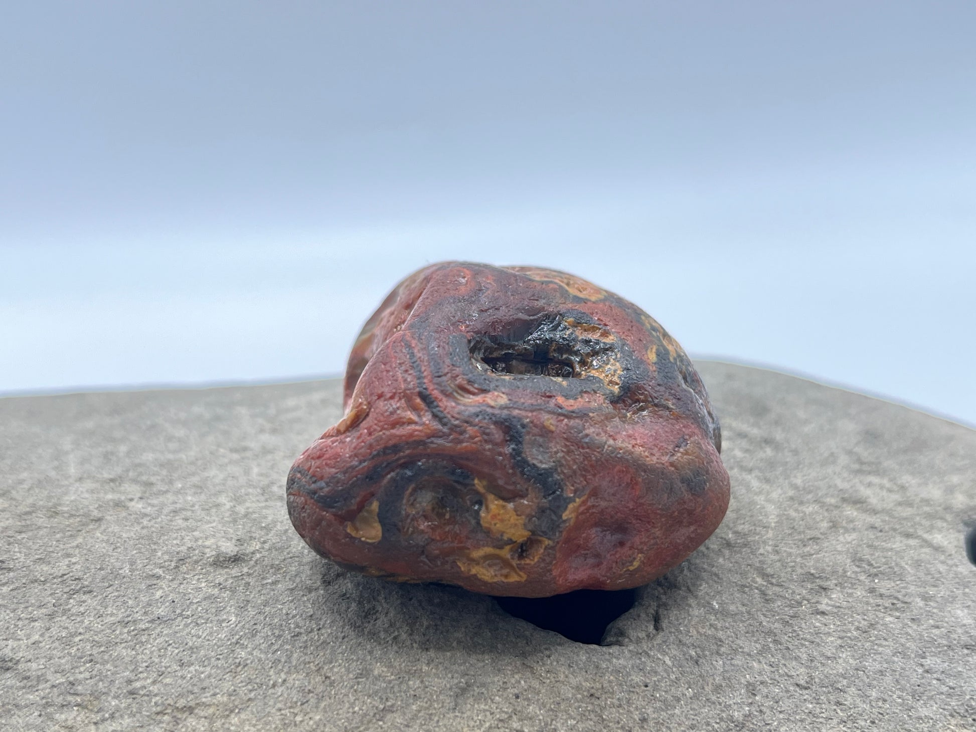 Lake Superior Agates come from Minnesota and are debated as the oldest agates on the planet! Created during the mid continental rift in the northern end of the country 1.1 billion years ago. This geologic event created air pocket filled basalt flows in northern Minnesota and the basin which created Lake Superior! These basalt flows had iron rich silica water flowing over them creating the signature red banding in these gorgeous stones! As the Larentide Ice Sheet made its way across the North Shore of Lake Superior roughly 20,000-25,000 years ago. It ground these gorgeous agates out of the basalt and dispersed them through out the Midwest region!